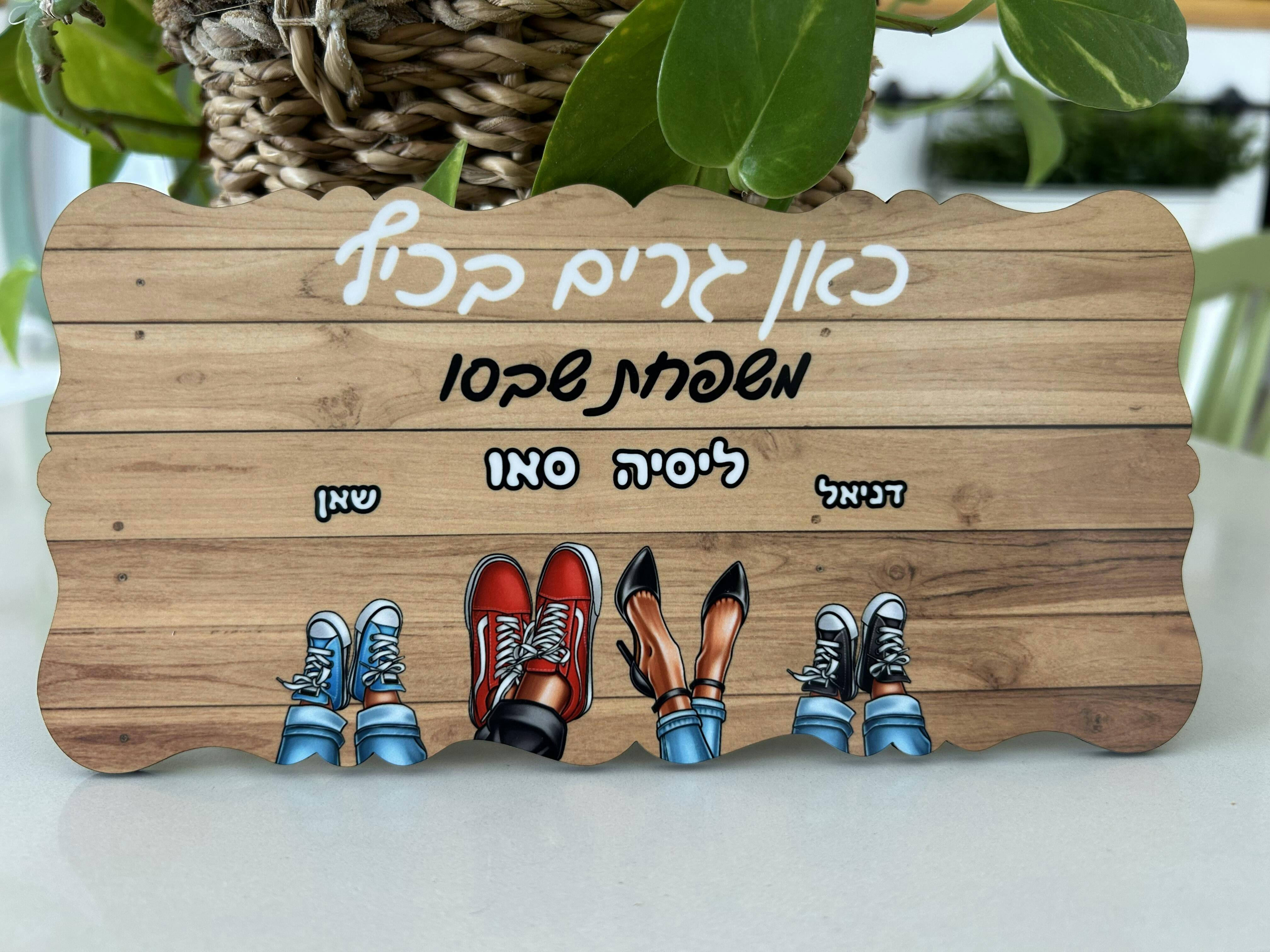 שלט כניסה מתנה לבית בהתאמה אישית עיצוב נעליים - מתנה למשפחה